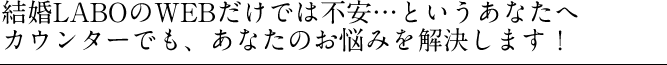 結婚LABOウエディングのカウンターでは、そんな悩みを抱えているあなたもお待ちしています。