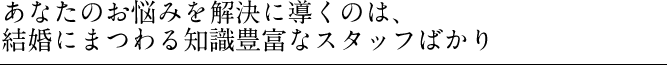 結婚LABOウエディングのスタッフは、数多くのカップルを幸せな結婚に導いてきた、経験も知識も豊富なスタッフばかりです。あなたのお悩みを丁寧にお伺いし、解決方法をご提案します。まずはご相談ください。